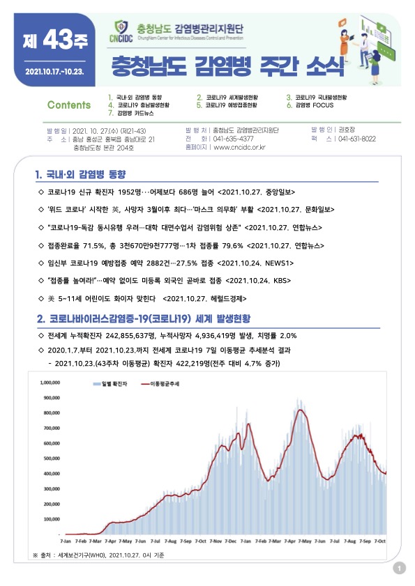 충청남도 감염병 주간소식지 제21-43호(43주) 입니다.