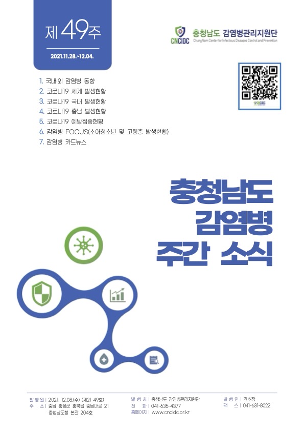 충청남도 감염병 주간소식지 제21-49호(49주) 입니다.