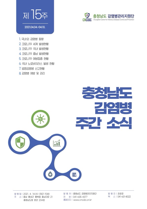 충청남도 감염병 주간소식지 제21-15호(15주) 입니다.