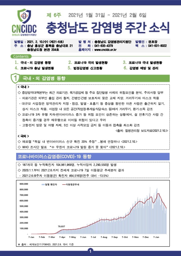감염병 주간 소식지(통권 제21-6호) 입니다.