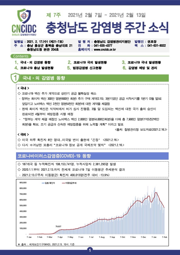 감염병 주간 소식지(통권 제21-7호) 입니다.