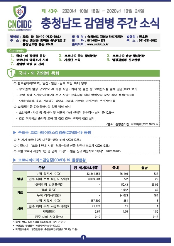 감염병 주간 소식지(통권 제20-39호) 입니다.