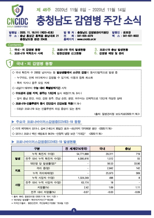 감염병 주간 소식지(통권 제20-42호) 입니다.