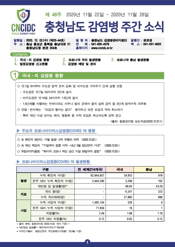 감염병 주간 소식지(통권 제20-44호) 입니다.