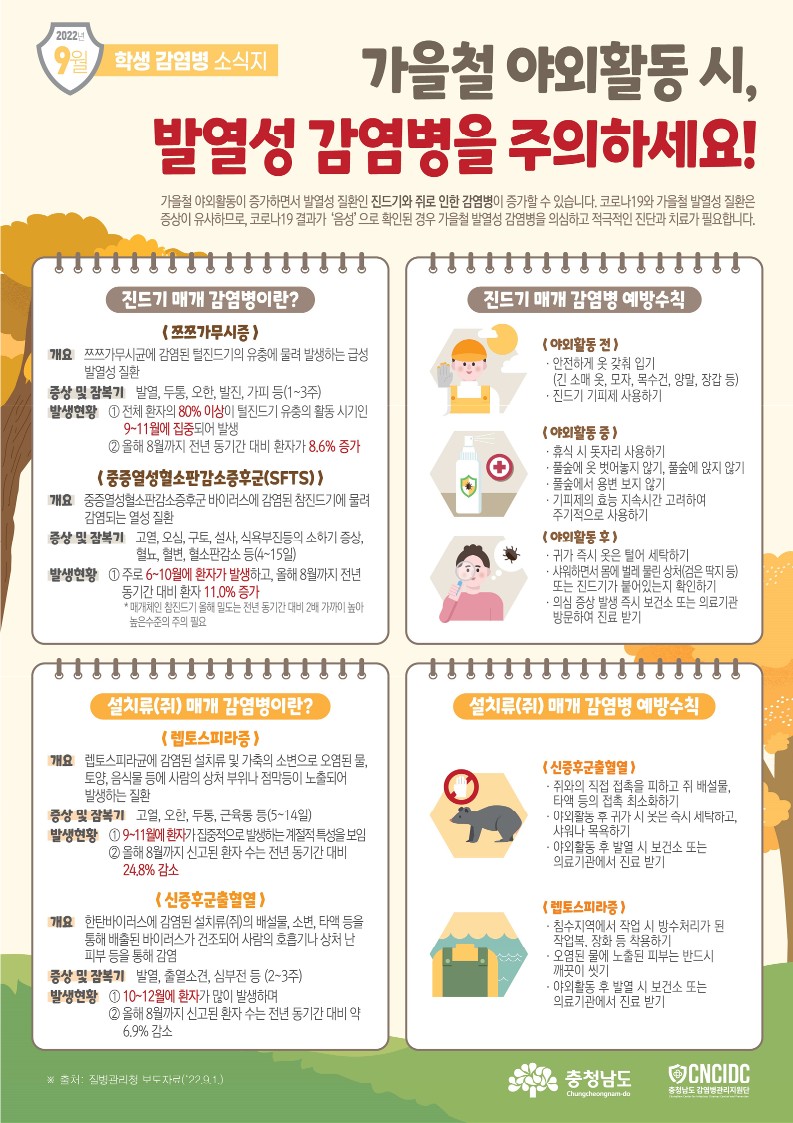 2022년 9월호(가을철 야외활동 시, 발열성 감염병을 주의하세요!)