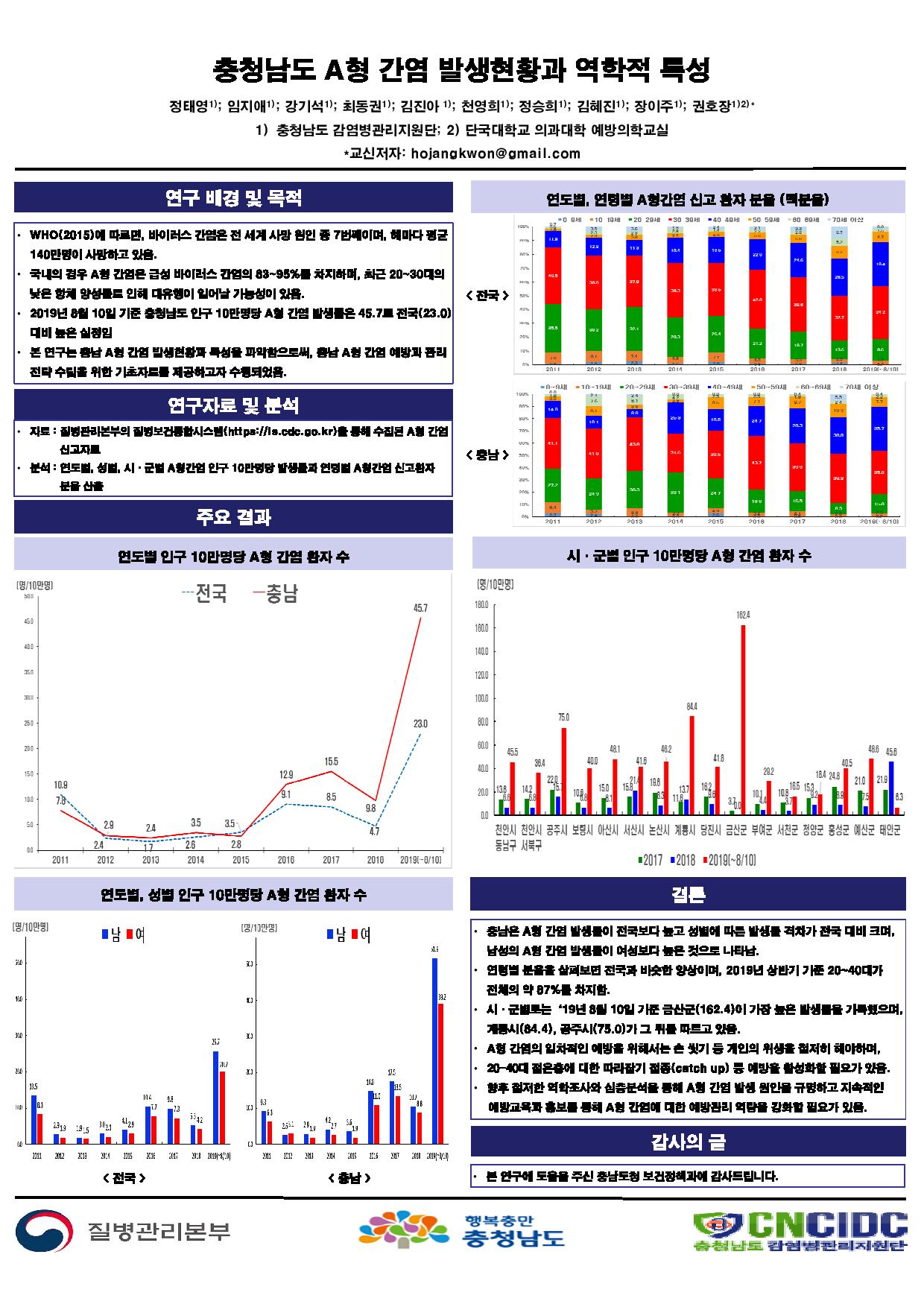 [포스터]2019년 대한예방의학회 추계학술대회_충청남도 A형 간염 발생현황과 역학적 특성